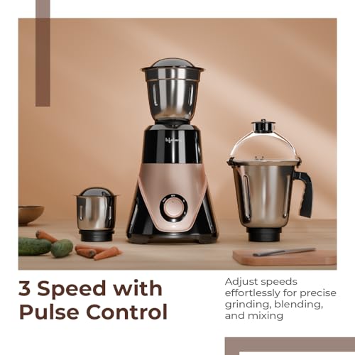 750W Motor for Efficient Grinding – This mixer grinder is equipped with a high-performance 750-watt motor, delivering smooth and consistent grinding results. It effortlessly grinds tough ingredients like spices, pulses, and grains while ensuring efficient blending of juices, smoothies, and pastes.