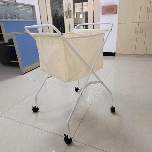 🧿 Premium Material: This Laundry Cart With Wheels Features A White Metal Frame And An Apricot Colored Cotton Bag, Providing A Stylish And Practical Solution For Storing Your Clothes And Miscellaneous Items