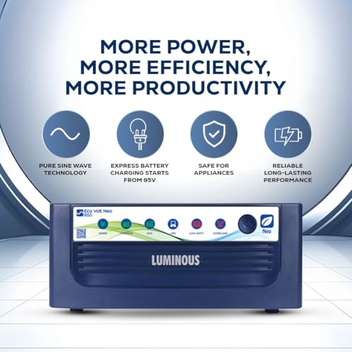 Pure Sine Wave Inverter: Luminous Eco Volt Neo 850 offers 700 VA/12V capacity with a rated power of 588 watts, delivering clean, stable power for sensitive devices.