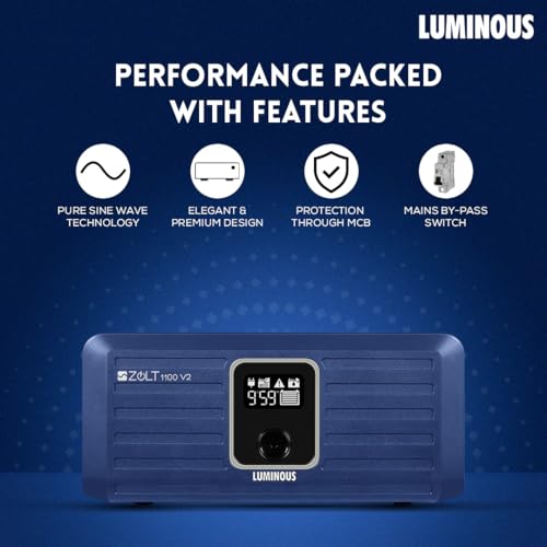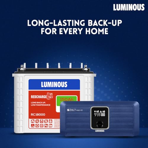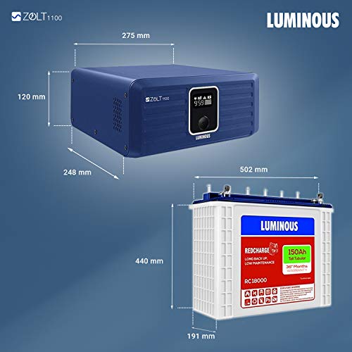 Luminous Inverter & Battery Combo for Home, Shop & Office – Zolt 1100 (900VA/12V) Pure Sine Wave Inverter + RC18000 150Ah Tall Tubular Battery | 36M Warranty on Inverter & Battery