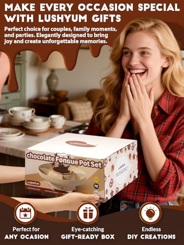 LARGE CAPACITY FOR ANY PARTY The LUSHYUM Chocolate Fondue Set offers a capacity of 4 cups – four times more than traditional 300ml pots. The 33% larger turntable provides extra space for fruits, biscuits & snacks. Ideal for family gatherings, holidays and small parties, without constant refilling.
