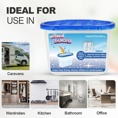 MantraRaj 500ml Interior Dehumidifier Disposable Pack Of 12 Moisture Absorber Dehumidifiers for Damp, Mould, Moisture in Home, Kitchen, Wardrobe, Bedroom, Caravan, Office, Garage, Bathroom, Basement