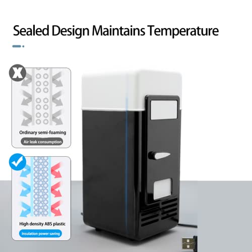 Mini Fridge for Bedroom, Low Noise USB Portable Refrigerator, Single Can Car Fridge for Skin Care, Drinks, Food, Cosmetics, Home, Bedroom, Office and Car (Black)