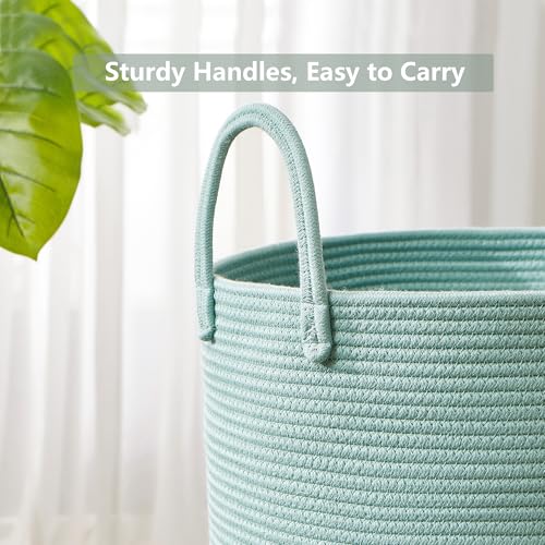 MOJOSCEND 58L Cotton Rope Laundry Hamper Basket, Woven Tall Storage Basket for Blanket, Large Clothes Hamper for Bedroom, Baby Nursery Kids Laundry Basket Organizer- Green
