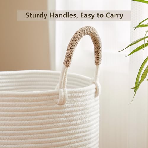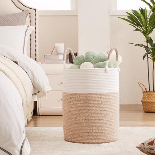 MOJOSCEND Cotton Rope Laundry Hamper Basket, Tall Woven Laundry Basket for Blanket, Large Clothes Hamper for Bedroom, Baby Nursery Kids Clothes Organizer