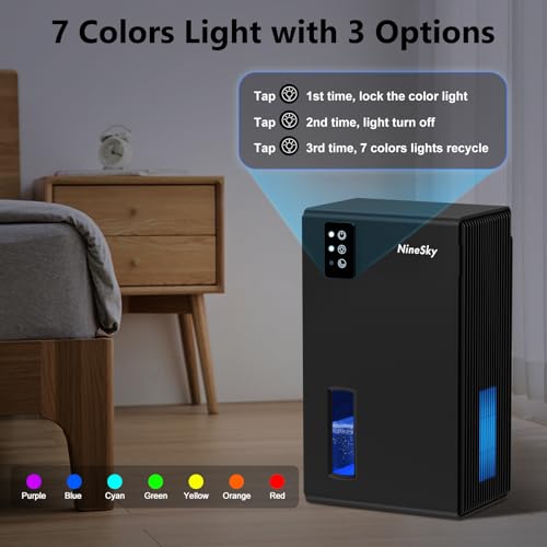 NineSky Home Dehumidifier, 94 oz Water Tank (1000 m2) Auto Shut Off Bathroom Bedroom Basement, 7 Colors LED Light (Black)
