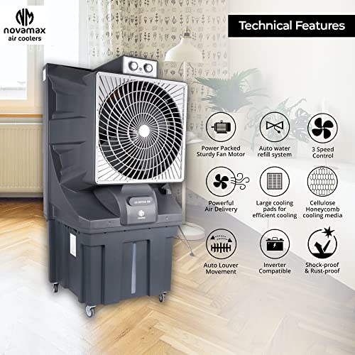 Novamax Gloster 150 L Heavy Duty Desert Air Cooler With 100% Copper Motor, High-Density Honeycomb Cooling Pads, Powerful Air Throw & 3-Speed Control With Auto Water Refill Technology (Grey)