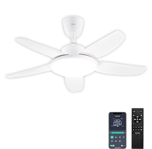 oltao Falcon – Decorative 44 inch White Ceiling Fan with Dimmable 3 Colour LED Lights, Modern Ceiling Fan with 5 Blades, Noiseless Reversible BLDC Motor