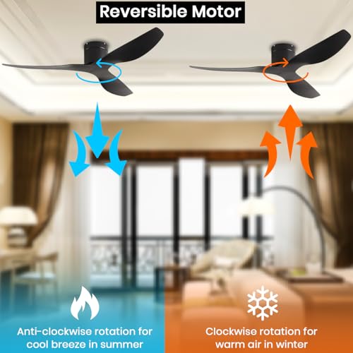 【Elegant Design】: The OLTAO Titan Hugger Ceiling Fan, with its matte black finish and stylish 3 blades, adds a touch of modern minimalism to any space. Crafted with durable, thickened wood, its 52-inch flush mount design ensures a solid, practical fit.