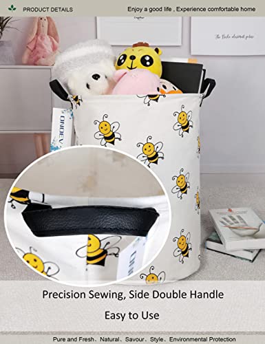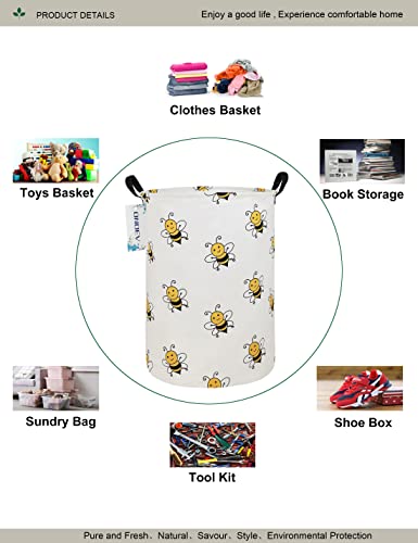 ONOEV Round Folding Laundry Hamper, Canvas Basket,Nersury Hamper,Suitable for Children,Office,Bedroom,Clothes,Toys Storage(Bee)
