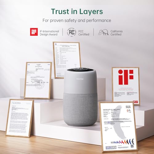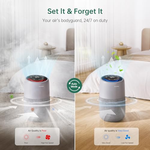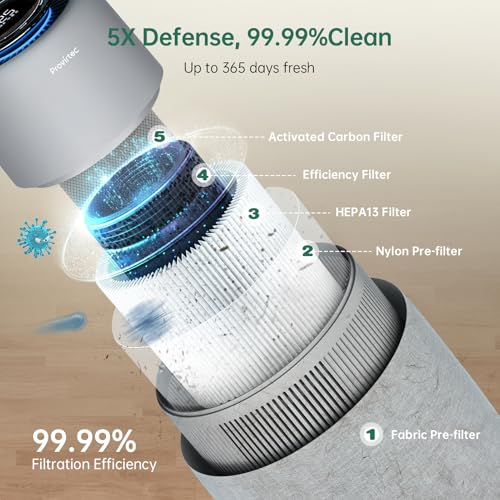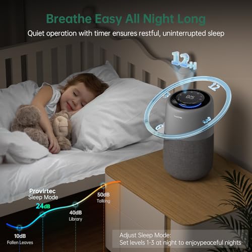 Provirtec Air Purifier for Home Bedroom, HEPA Air Purifier with PM2.5 Air Quality Monitor
