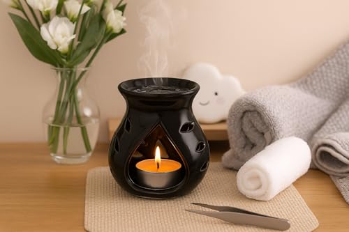 Pure Source India Ceramic Clay Candle Operated Aroma Burner (Black; 9 Cm)