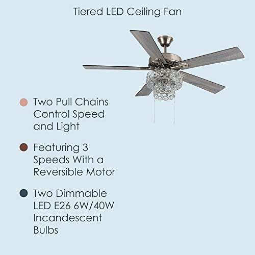 River of Goods Glam 52 Inch Width Tiered Crystal Chandelier LED Ceiling Fan, Clear