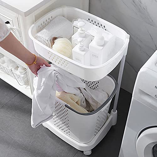 SalLady Saving Space Large Capacity Toys Towels Clothes Room Laundry Basket Multilayer Removable Mobile Rolling Sturdy Bathroom Trolley with Wheels