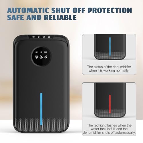 SAMSICHI Dehumidifier, 85 OZ Dehumidifiers for Room for Home, (800 sq. ft.) Quiet Dehumidifiers for Bathroom, Bedroom, Closet, RV, 7 Colors LED Auto Shut Off Dehumidifier with Drain Hose