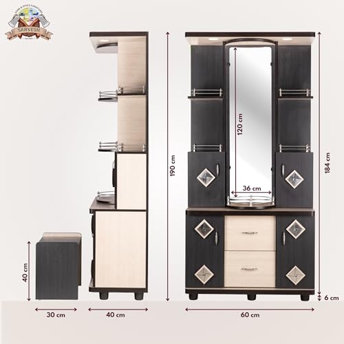 SARVESH – Wooden Dressing Table – 6 x 2.5 Feet- Wardrobe for Men & Women, Rotatation Dual Options of Mirror & Shelves