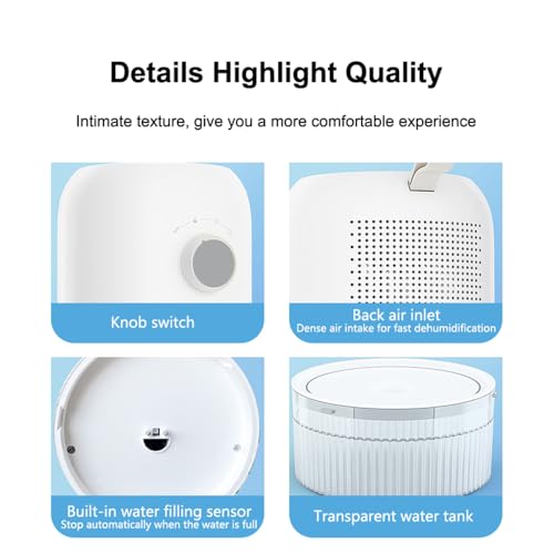 【FRIENDLY DESIGN】The bedroom dehumidifier is conveniently designed with rotary switch and built-in handle for easy portability. The removable water tank make maintenance a breeze.