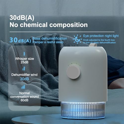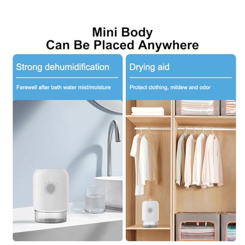 【LIGHTWEIGHT PORTABLE】The small dehumidifier measures 6.1(L)*6.1(W)1*8.4(H) inches, net weight : 2 lb. The lightweight and portable dehumidifier design makes it doesn’t take up too much space, you can place it in your bathroom, bedroom, closet, kitchen, cabinet, garage, RV, office or any other spaces if you wish.