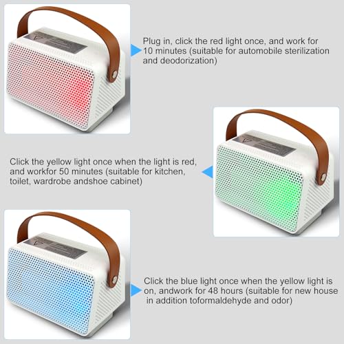 Portable and Stylish Design:Small, exquisite, and portable, this odor eliminator saves space and is ideal for use in any air-flow limited space, such as wardrobes, shoe cabinets, refrigerators, and automobiles.