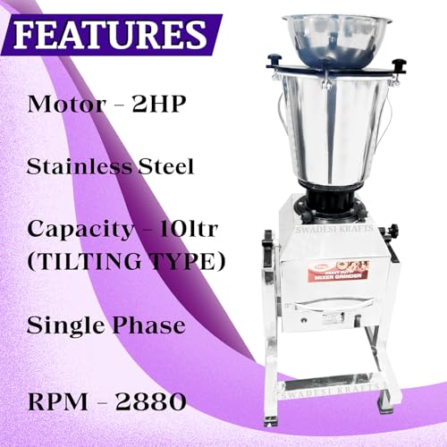 SWADESI KRAFTS Heavy Duty Mixer Grinder Stainless Steel Machine With 2 Hp Single Phase Motor Tilting Mixer Grinder Size 22”X17”X40” (LXWXH) Used for Grinding Pastes, Chutney and More