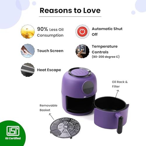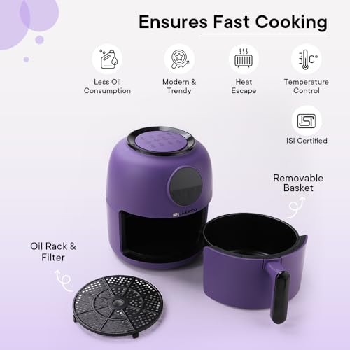 The Better Home Fumato Anniversary, Wedding Gifts For Couples- 12 Presets Digital Air Fryer For Home 3 In 1 Mixer Grinder Blender House Warming Gifts 1 Year Warranty (Purple), 4.5 Liters, 1300 Watts