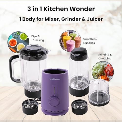 VERSATILE: FUMATO Air fryer comes with 12 presets and 5 cooking options, which allows for easy frying, grilling, baking, defrosting, and roasting. The touch control feature makes it user-friendly, providing a hassle-free cooking experience. The nutri blender comes with 3 jars of different capacities (300ml, 600ml, 1000ml) and 2 knife blades, making it suitable for a wide range of blending needs. Use the Fumato Nutri Blender for its effective blending capabilities for smooth results.
