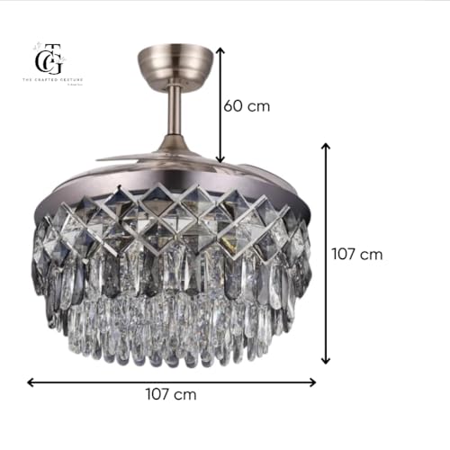 Smart Retractable Blade Design: Expands to 42 inches for powerful airflow and retracts to 20 inches when off, transforming into a sleek crystal chandelier.