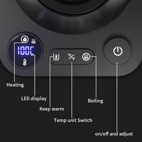 Intelligent‘: The electric coffee kettle design with smart temperature display that allows you to adjust the temperature (40-100°C), ensuring your coffee or tea is brewed the optimal temperature every time