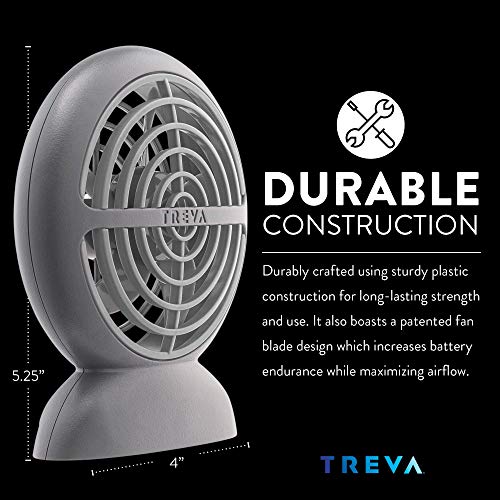 Treva Rechargeable Battery Small Fan – 3.5 Inch Blade USB Charging Port Fan – 3 Speed Circular Cooling Design – Portable Handheld or Personal Desktop Size – Travel Ready (Grey, 2)