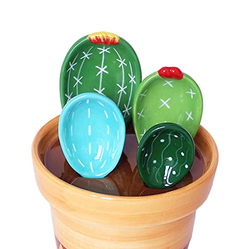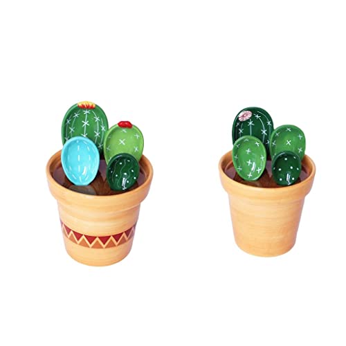 VELURA 2X Creative Cactus Measuring Spoons in Flower Pot for Food Kitchen Gifts|2 Set Cactus Scale Spoons with Base|Measuring Cups & Spoons| Kitchen, Dining & Bar |Home & Garden