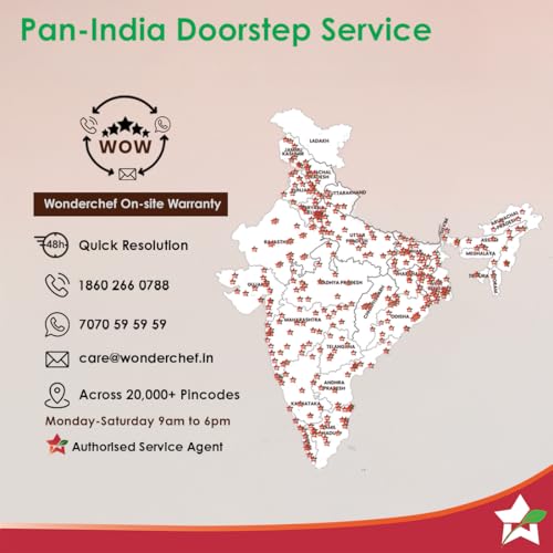 RELIABLE AFTER-SALES SUPPORT WITH 2-YEAR WARRANTY: Enjoy peace of mind with Wonderchef’s on-site service coverage across 20,000+ pin codes and a trusted 2-year warranty.