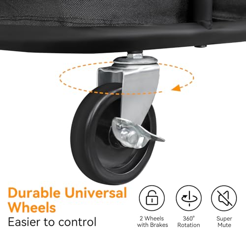 [Durable Wheels]: The dirty clothes hamper equipped with 4 durable multi-direction wheels (2 lockable). The smooth rolling casters with brakes make it easy to move the basket cart from room to room.