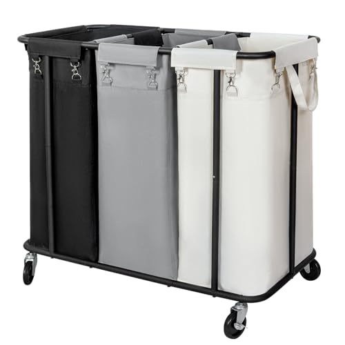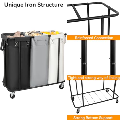 WOWLIVE Laundry Hamper with Wheels 260L Rolling Laundry Basket 3 Section Organizer Laundry Cart with Steel Frame and Removable Bags Large Dirty Clothes Hamper Dorm Room Storage for Bedroom