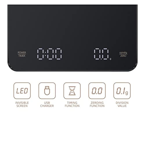 YOUR HEART 3kg 0.1g LED Screen Charging Coffee Scale Timing Hand Brewing Coffee Electronic Scale Household Kitchen Scale (Color : 01)
