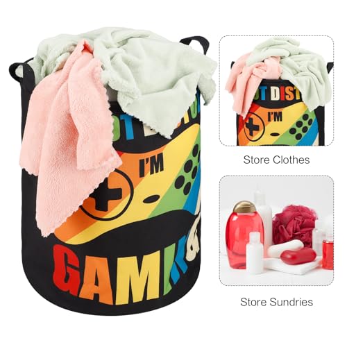 Novelty Design: our dirty clothes storage bins adopt stylish and novelty design, printed with game controller patterns and related texts, such as [DO NOT DISTURB I’M GAMING], [let’s have some fun], [time to win], which will add more fun to your life